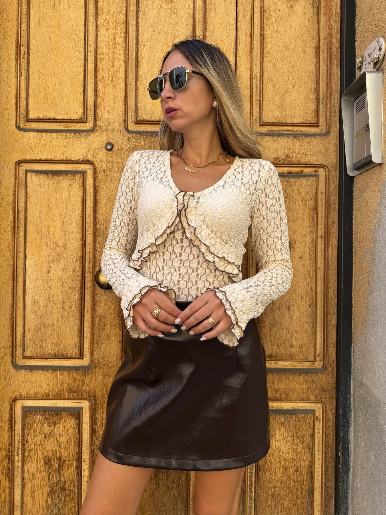 Un capo must-have dal carattere audace e moderno. Realizzata in materiale effetto vernice, questa minigonna dona luminosità e stile a qualsiasi look.